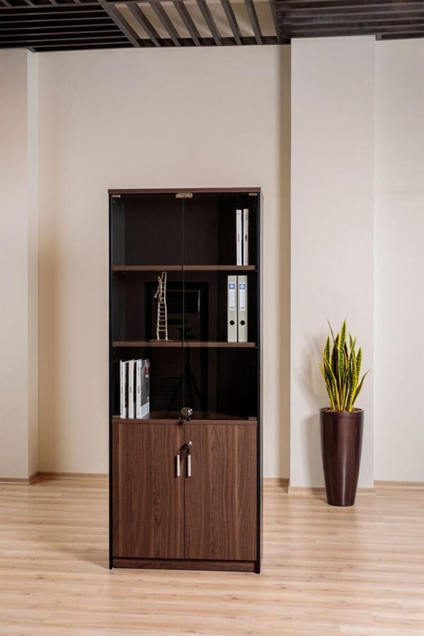 2 Door Book Case  – Chocolate Brown , Size : 200H x 80W X 40D cm