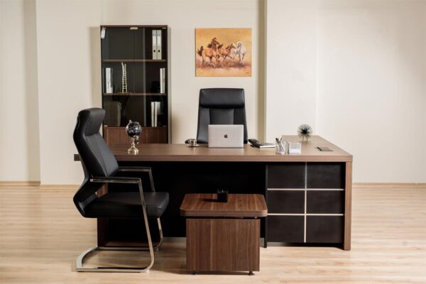 L Shape Executive Office Desk – Wenge Wood Color , Size : 200W x 90D x 75H CM