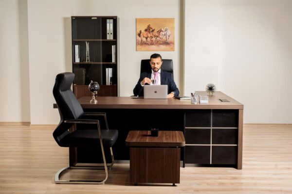 L Shape Executive Office Desk – Wenge Wood Color , Size : 200W x 90D x 75H CM