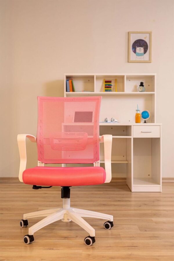 Low Back Mesh Chair – White PP , Pink Mesh and Cushion