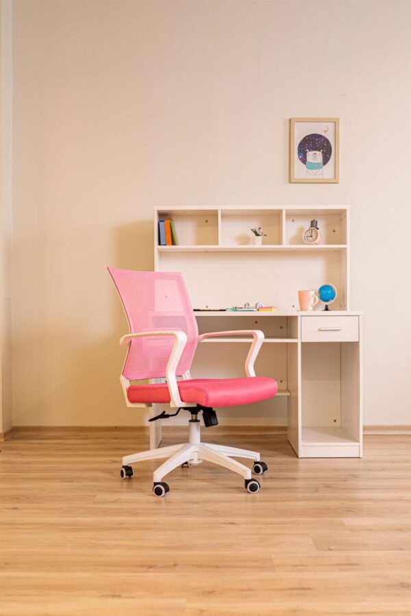 Low Back Mesh Chair – White PP , Pink Mesh and Cushion